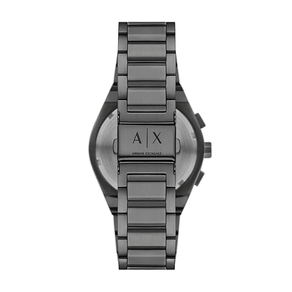 Elevate your watch game with this designer 42mm chronograph watch that comes with a round dial, functionality subdials, and a three-hand movement with stick indices. The watch also features water resistance up to 50 meters and a sturdy metal strap with a push-over deployment clasp closure that ensures a secure fit.