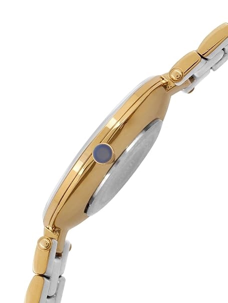 Dial Color: White, Case Shape: Round, Dial Glass Material: Glass Band Color: Gold, Band Material: Stainless Steel Watch Movement Type: Quartz, Watch Display Type: Analog Case Material: Stainless Steel, Case Diameter: 36 millimeters Water Resistance Depth: 50 meters, Fold-Over Clasp