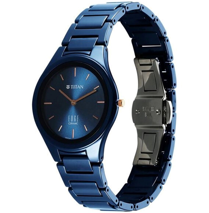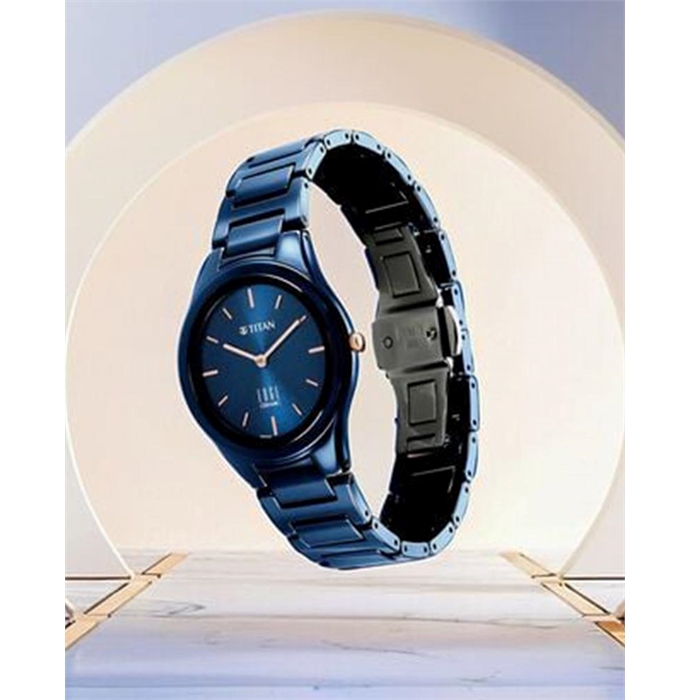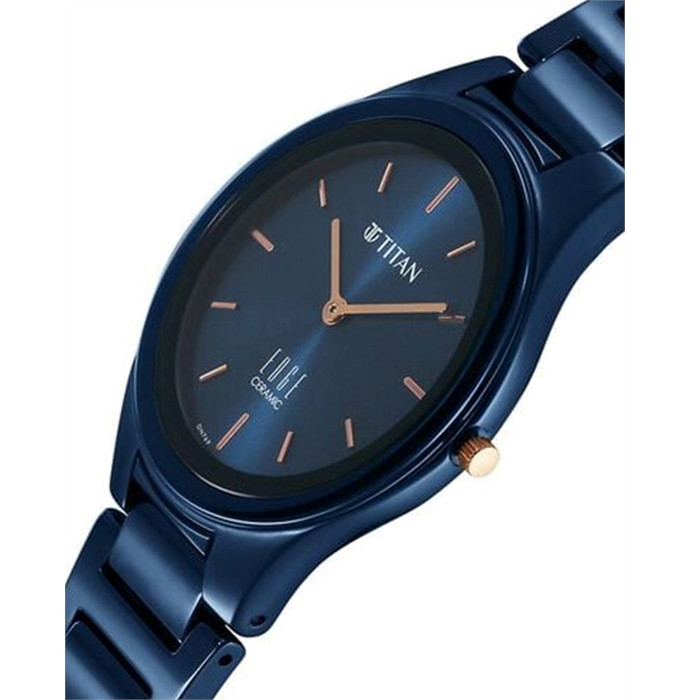Titan Edge Ceramic Quartz Analog Blue Dial Blue Ceramic Strap Watch for Women - NT2653QC03