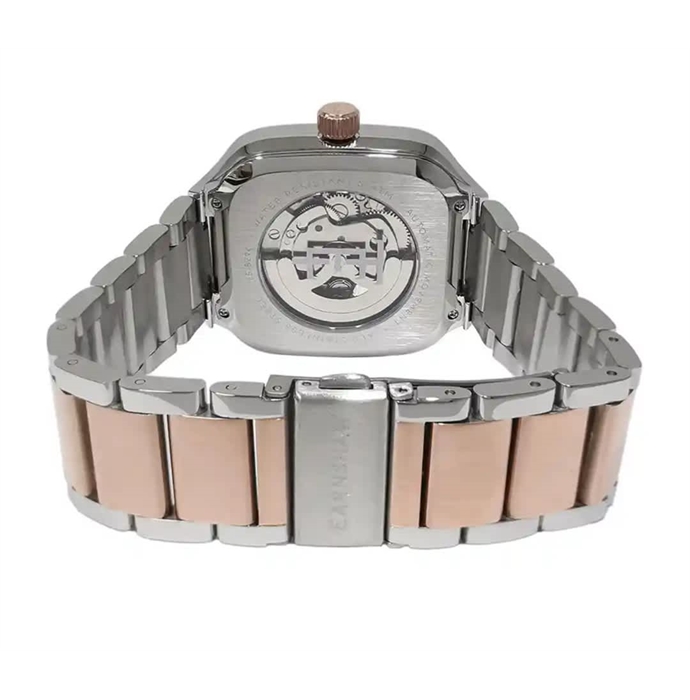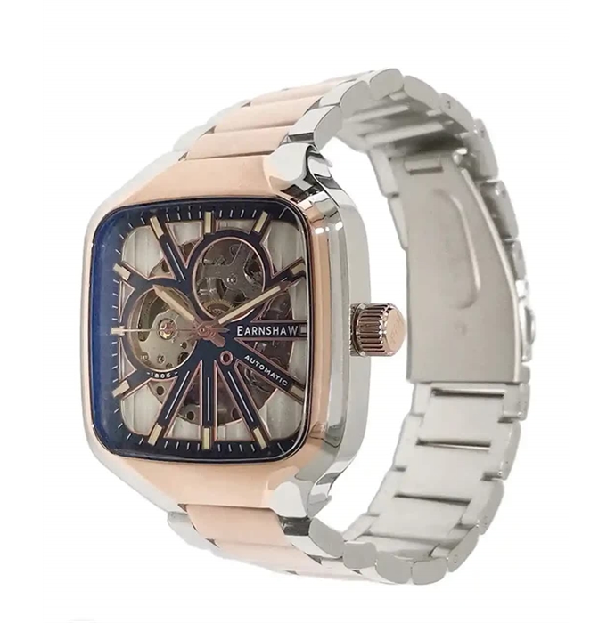 Proudly displaying its openwork masterpiece, the Pexton Skeleton watch allows a clear view of its inner perfection. Pexton combines a unique square design with its exceptional mechanisms. Following its quest for beauty, with the Earnshaw Skeleton exquisitely embodying the idea of complex simplicity, the watch unveils with its linear shapes the intricate world of horological movements. This Skeleton watch with mechanical skeletonized manufacture movement, manual winding, small seconds, power rese