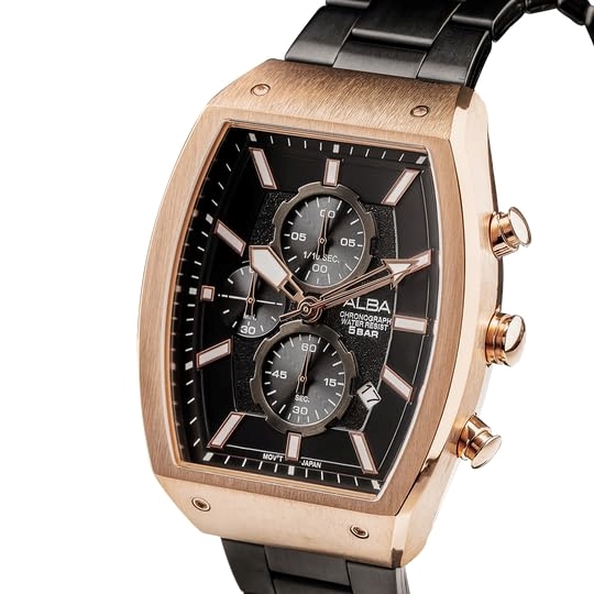 ALBA AM3992X1 Black & Gold Rectangular Dial Chronograph Watch, Men`s Sporty Timepiece