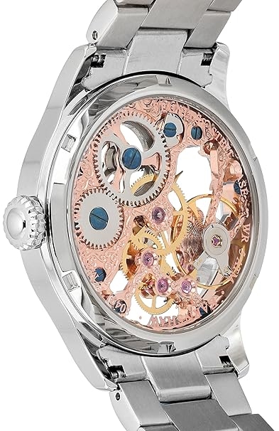 The Bauer Mechanical watch is powered by a 17 jeweled hand wound automatic skeleton movement and features contrasting black breguet styled hands on a beautifully designed skeleton doal