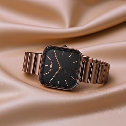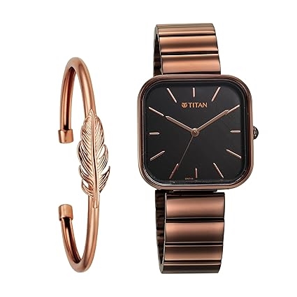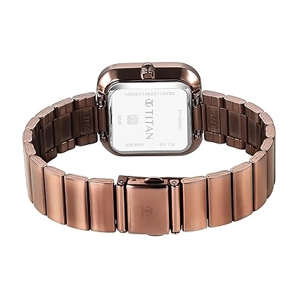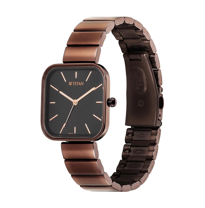 Titan Purple Stackables Quartz Analog Black Dial Metallic Brown Stainless Steel Strap Watch for Women - NT2715QM01F