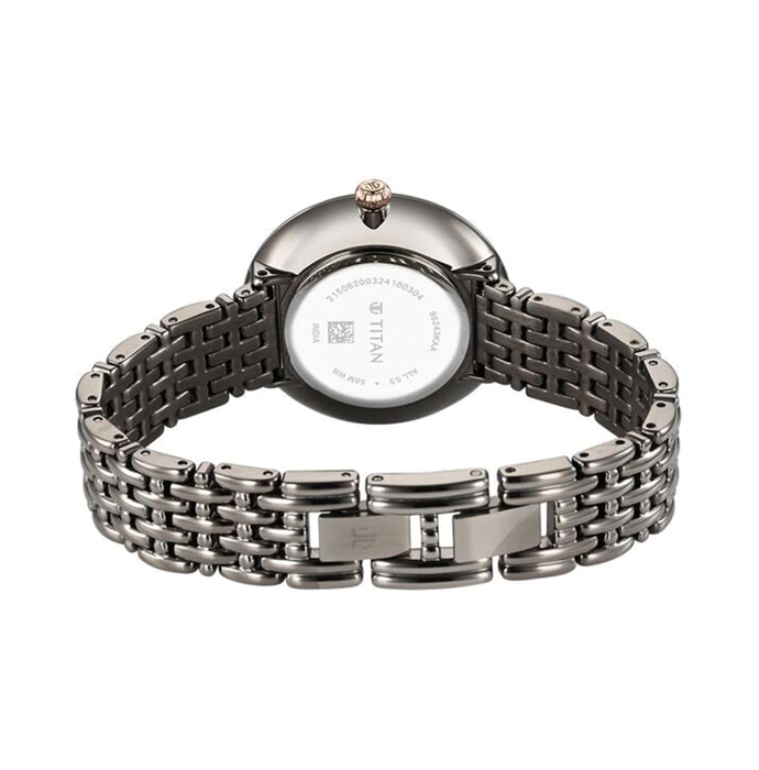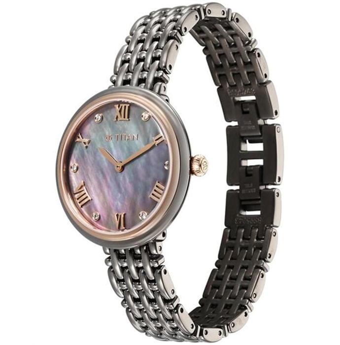 Titan Aura Quartz Analog Multicolour Mother of Pearl Dial Grey Stainless Steel Strap Watch for Women - NT95243KM01