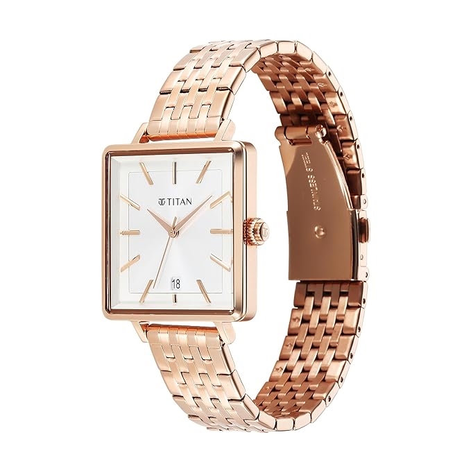 Titan Minimalists Quartz Analog with Date Silver Dial Rose Gold Stainless Steel Strap Watch for Women