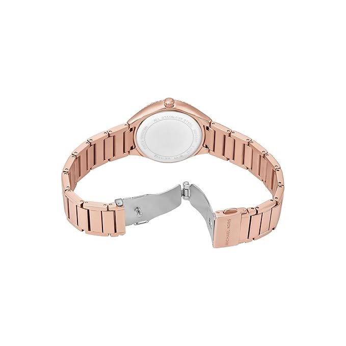 Michael Kors Leather Analog White Dial Women`s Watch-Mk7467, Band Color:Rose Gold